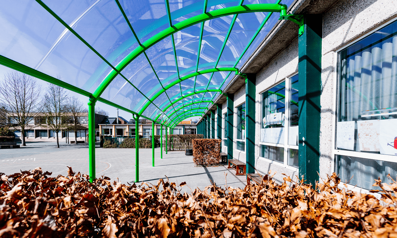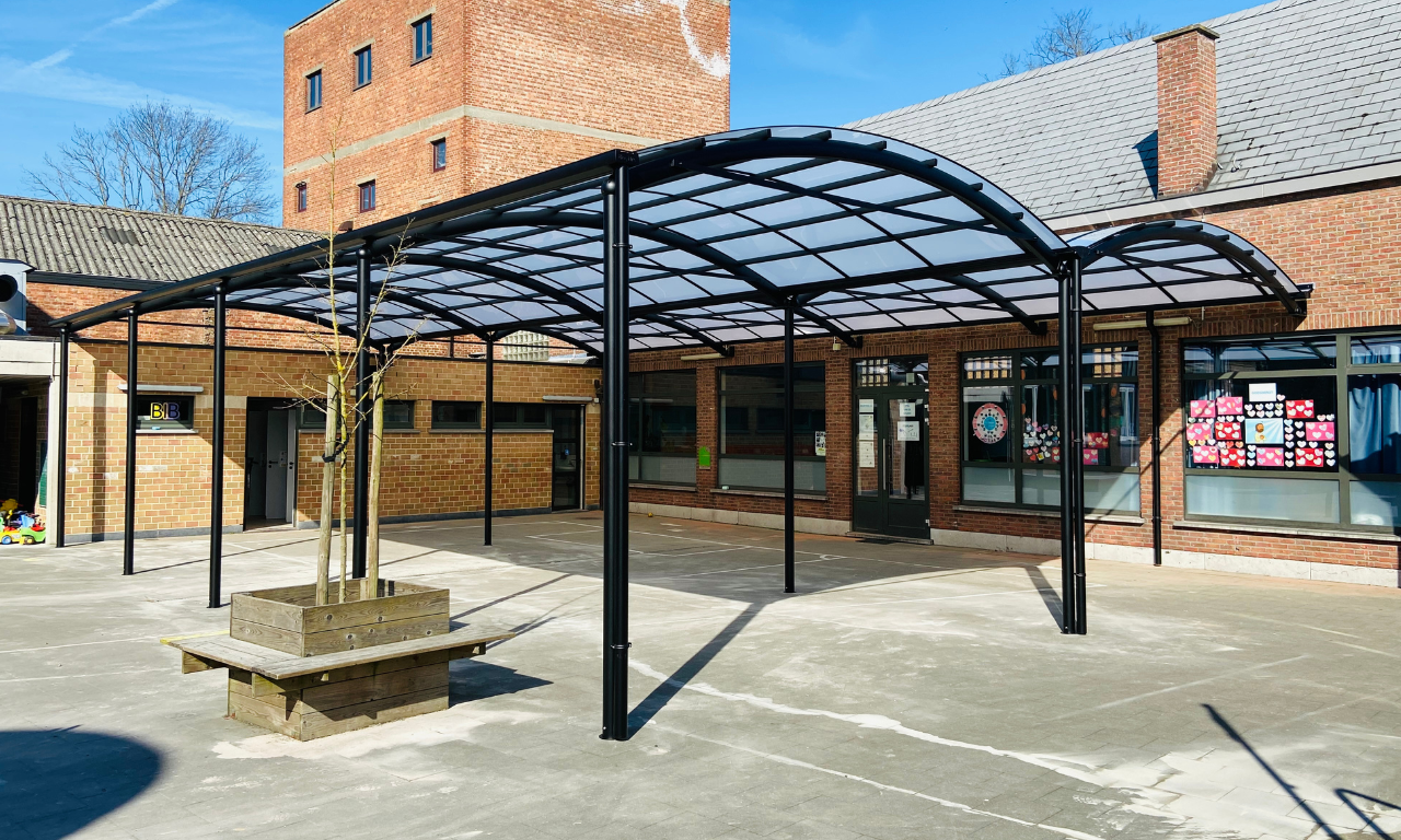 Met een BOzARC-overkapping ga je slim om met het beschikbare terrein. Een veilige en goed uitgeruste fietsenstalling voor vaak dure fietsen. Of een overdekte speelplaats die daarom bij regen- of zeer zonnig weer haar functie maximaal behoudt.